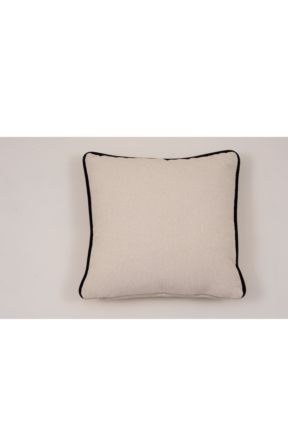 - Dengeleyici Düz Renk: Ortadaki düz krem yastık, desenlerin yoğunluğunu dengelerken; kenarındaki siyah fitil (biye) detayıyla takımı tamamlar.