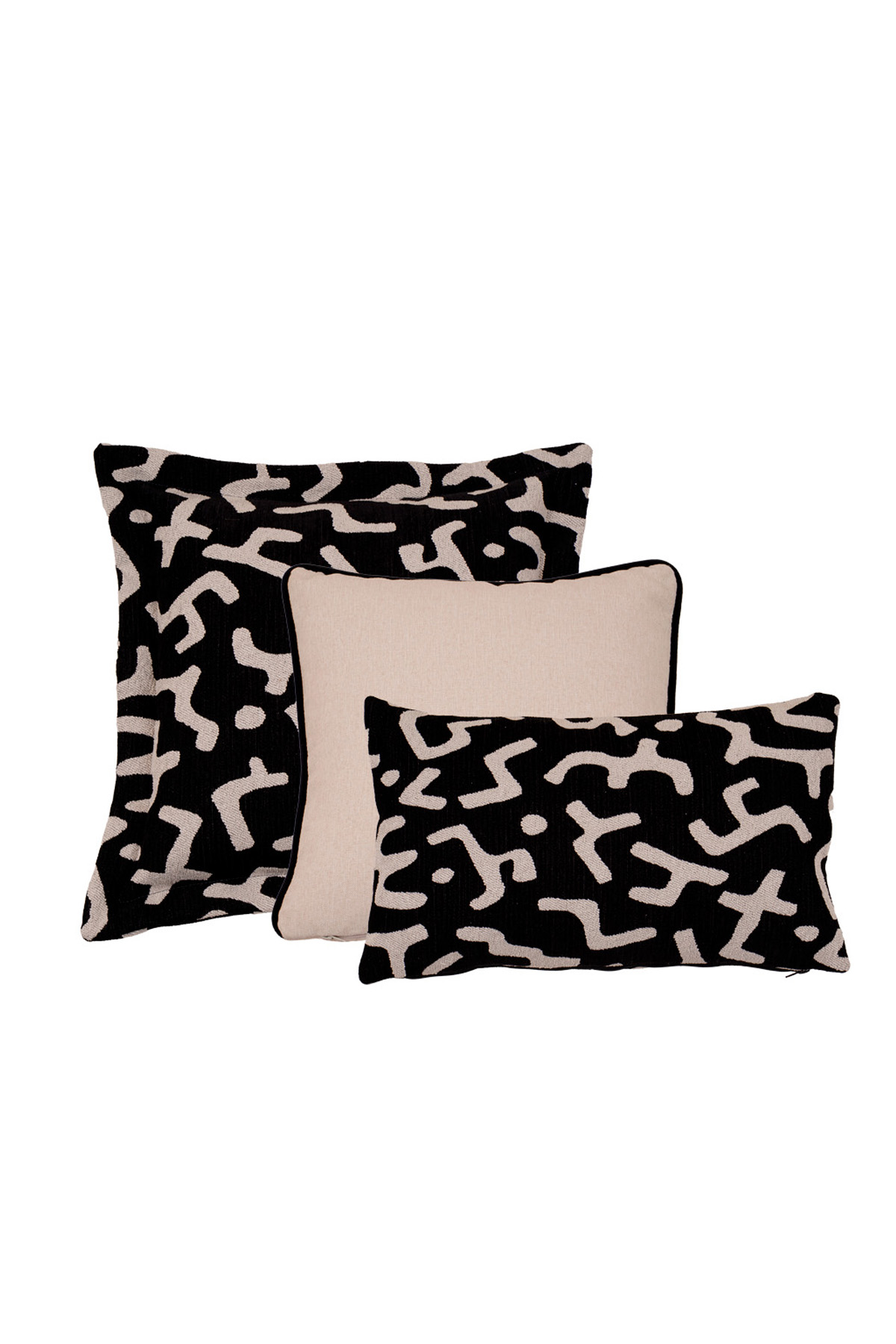 - Tribal Desenler: Siyah zemin üzerine işlenmiş krem rengi soyut şekiller, dekorasyonunuza sanatsal ve bohem bir derinlik kazandırır.