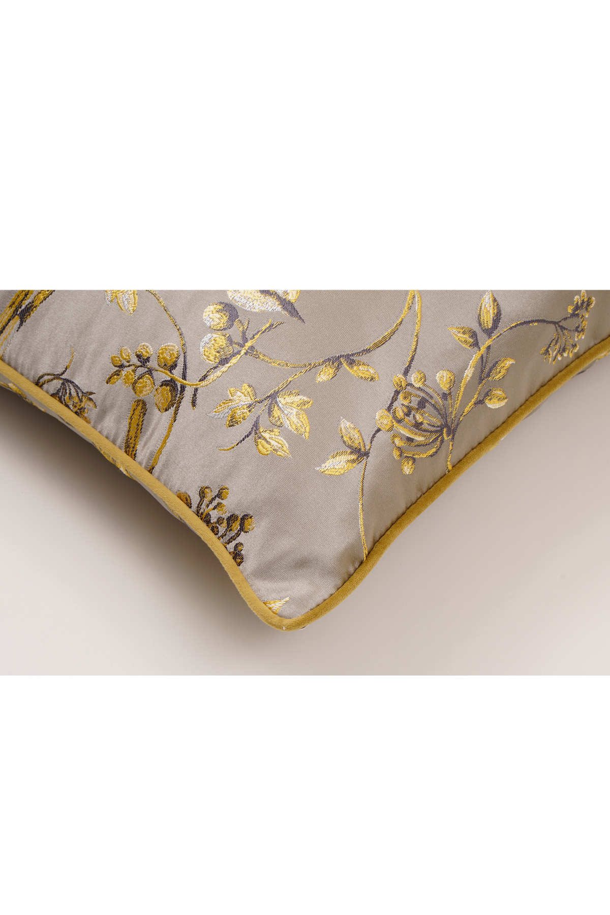 - Kadife Yumuşaklığı: Düz hardal yastıkta ve desenli yastıkların kenarlarında kullanılan 1. sınıf kadife, lüks bir dokunma hissi sunar.